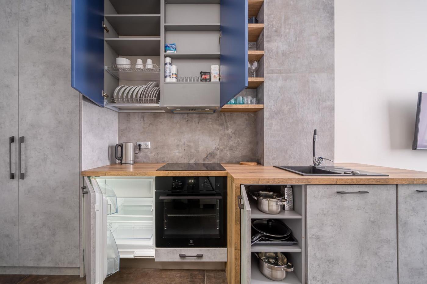 One-Bedroom Apartment. Boasting a private entrance, this apartment comes with 1 living room, 1 separate bedroom and 1 bathroom with a walk-in shower and a hairdryer. In the kitchen, guests will find a stovetop, a refrigerator, kitchenware and an electric kettle. The apartment features a washing machine, soundproof walls, a seating area, a flat-screen TV with streaming services, as well as ancourtyard view. The unit has 2 beds.