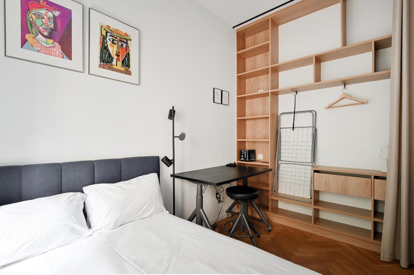 One-Bedroom Apartment. This apartment consists of 1 bedroom, a kitchen and 1 bathroom with a shower and a hairdryer. The well-fitted kitchen features a stovetop, a refrigerator and a toaster. The apartment provides a washing machine, soundproof walls, a wardrobe, an electric kettle and a flat-screen TV with streaming services. The unit offers 1 bed.