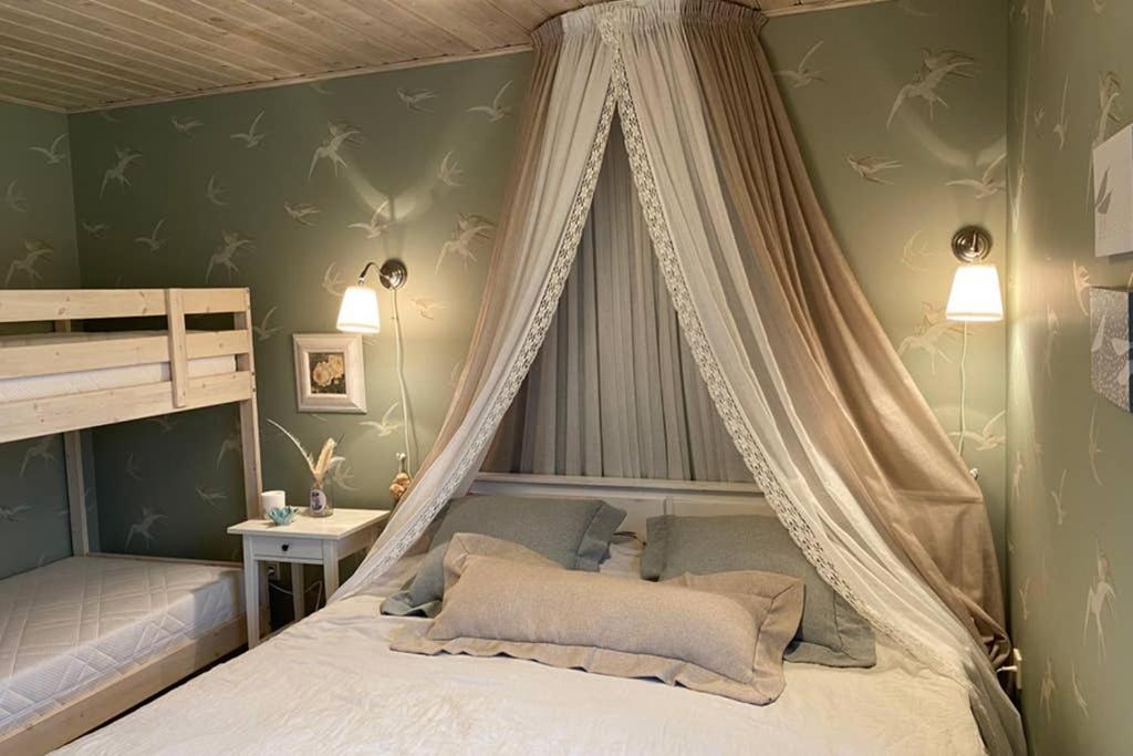 Five-Bedroom House. Guests will have a special experience as this holiday home offers a hot tub, a sauna and a fireplace. Featuring a private entrance, this spacious holiday home also consists of 5 bedrooms, a seating area and 1 bathroom with a shower and a hairdryer. Guests will find a stovetop, a refrigerator, a dishwasher and kitchenware in the well-equipped kitchen. The holiday home also offers a barbecue. Boasting a terrace with garden views, this holiday home also provides air conditioning and a TV. The unit offers 7 beds.