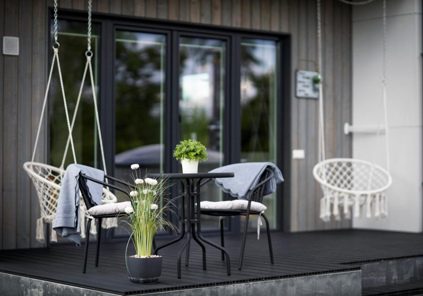 One-Bedroom House. The hot tub and sauna are the standout features of this holiday home. Featuring a private entrance, this air-conditioned holiday home is comprised of 1 living room, 1 separate bedroom and 1 bathroom with a shower and a hairdryer. Guests will find a stovetop, a refrigerator, kitchenware and a microwave in the well-fitted kitchen. The holiday home also has a barbecue. Boasting a terrace with garden views, this holiday home also offers soundproof walls and a flat-screen TV with streaming services. The unit offers 2 beds.